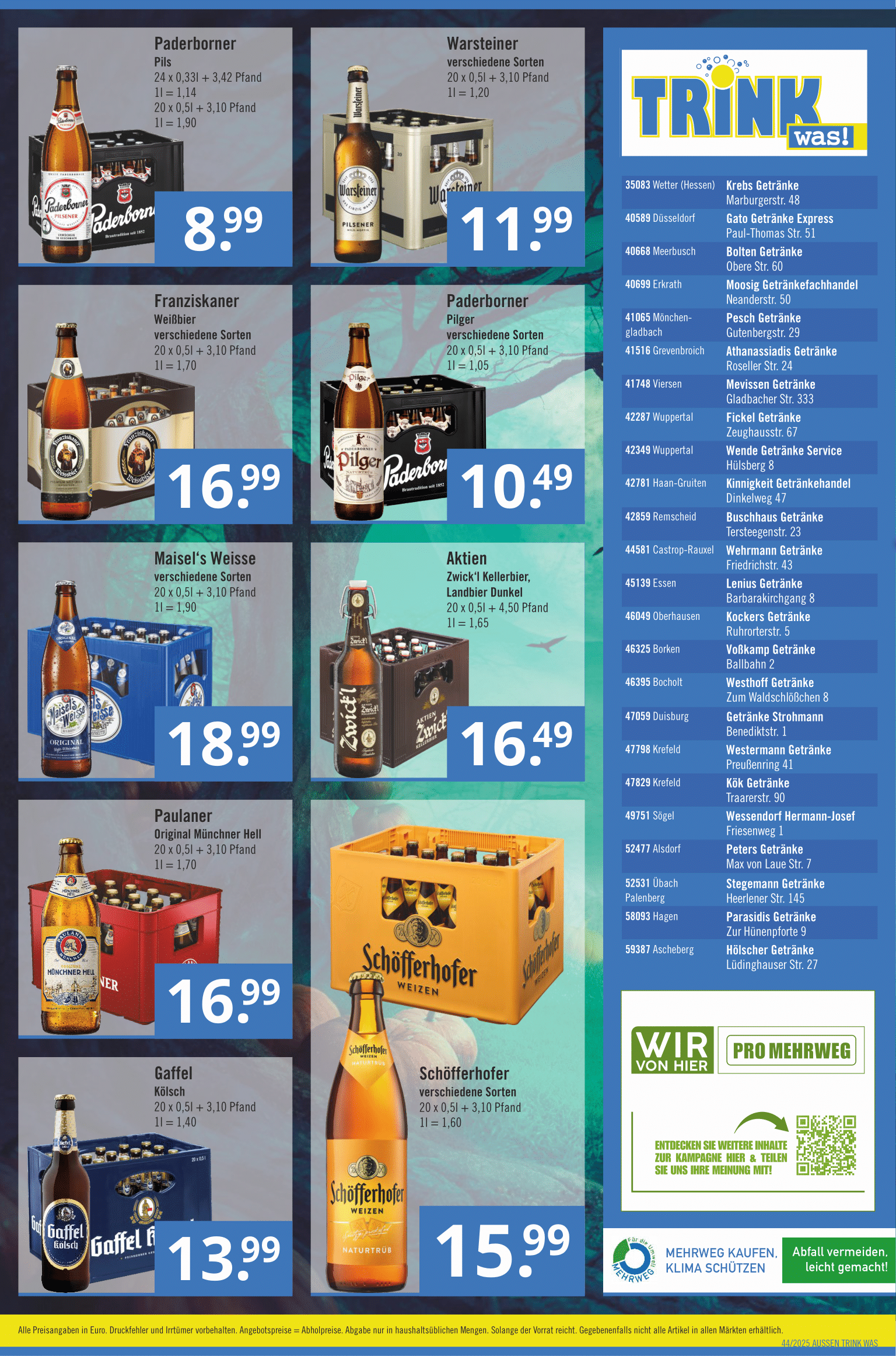 Getränke-Hölscher Ihr zuverlässiger Partner fürHandel, Gastronomie und Veranstaltungen! Aktuelle Angebote vom 27.10.2025 bis zum 08.11.2025 Öffnungszeiten Montag – Freitag 09.00 – 18.00 Uhr Samstag 09.00 – 14.00 Uhr Aktuelle Angebote